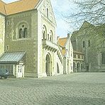 Befunde zur Burg Heinrichs des LöwenDie heutige Situation rund um den Burgplatz ist eine wesentlich andere als zur Zeit Heinrichs des Löwen. Bis in das späte 19. Jahrhundert war das Gelände östlich durch den Lauf der Oker begrenzt; dort befinden sich heute Straßentrassen mit großen öffentlichen Gebäuden. Ein flacher Ausläufer der Niederterrasse, der sich in die sumpfige Flußaue vorschob, gab den Standort von Burg und Stiftskirche vor. Verschwunden ist der Graben, der im Westen die Landzunge abtrennte, verschwunden auch der wehrhafte Mauerzug rings um das Areal. Von den Adelshöfen im Norden zeugt noch als später Nachfahre das v.Veltheimsche Haus (1573). Von den gegenüber liegenden Baulichkeiten des Stiftes St.Blasii ("Dom") blieb die imposante Kirche.