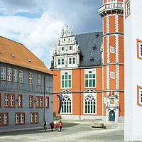 Bei freundlichem Stadtbild und nicht ganz belangloser Geschichte sucht die Stadt nun nach einer neuen Identifikation, zumal sich die wirtschaftliche Lage nach Fortfall der “Zonenrandförderung” kaum besser darstellt als zuvor. Aber da gab es doch noch eine andere Tradition. Richtig, die einer Universitätsstadt nämlich. 1576 durch den Wolfenbütteler Herzog als welfische Universität eröffnet, gehörte das Juleum bald zu den großen Stätten der Gelehrsamkeit. Im 17. Jahrhundert lag die Studentenzahl zeitweilig an dritter Stelle in Deutschland. Bemerkenswert ist, dass Hauptgebäude und “Collegien” baulich überdauert haben. Aula und Bibliothek sind im sogenannten Novum Juleum zusammengefasst, ein hervorragendes Zeugnis der niedersächsischen Renaissance-Baukunst (Paul Francke, 1592-97). Dort findet man jetzt auch das Kreis- und Universitätsmuseum.